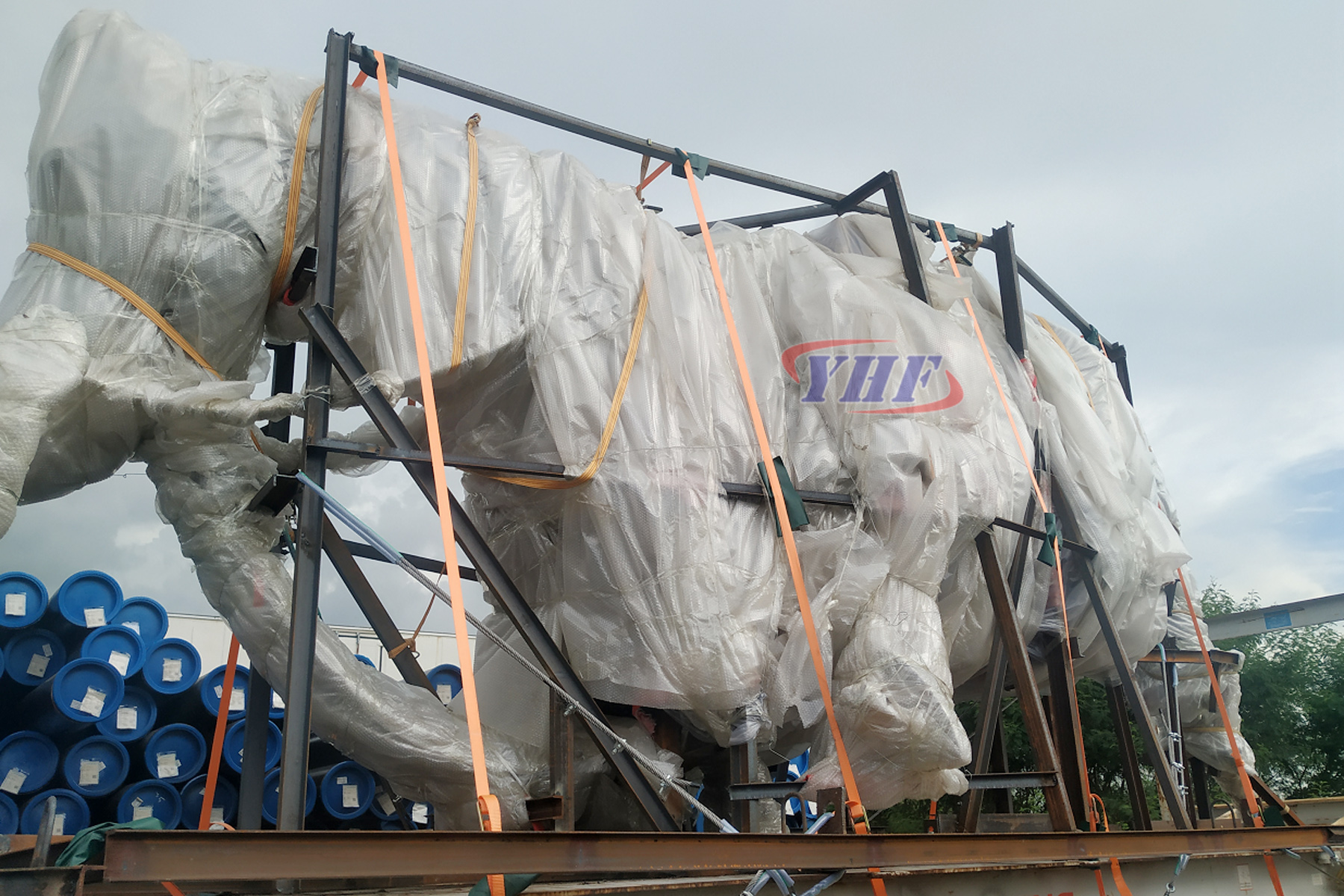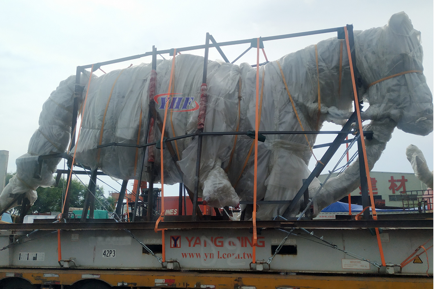 2019年7月26日,我司承运一批铜雕像,该批铜雕像共用了1X40FR+1X40OT装运,货物送到我司深圳仓库进行内装。为了使货物在运输过程中减少货损,对货物进行了包装处理,货物于当天晚上全部装好柜子并做好加固。